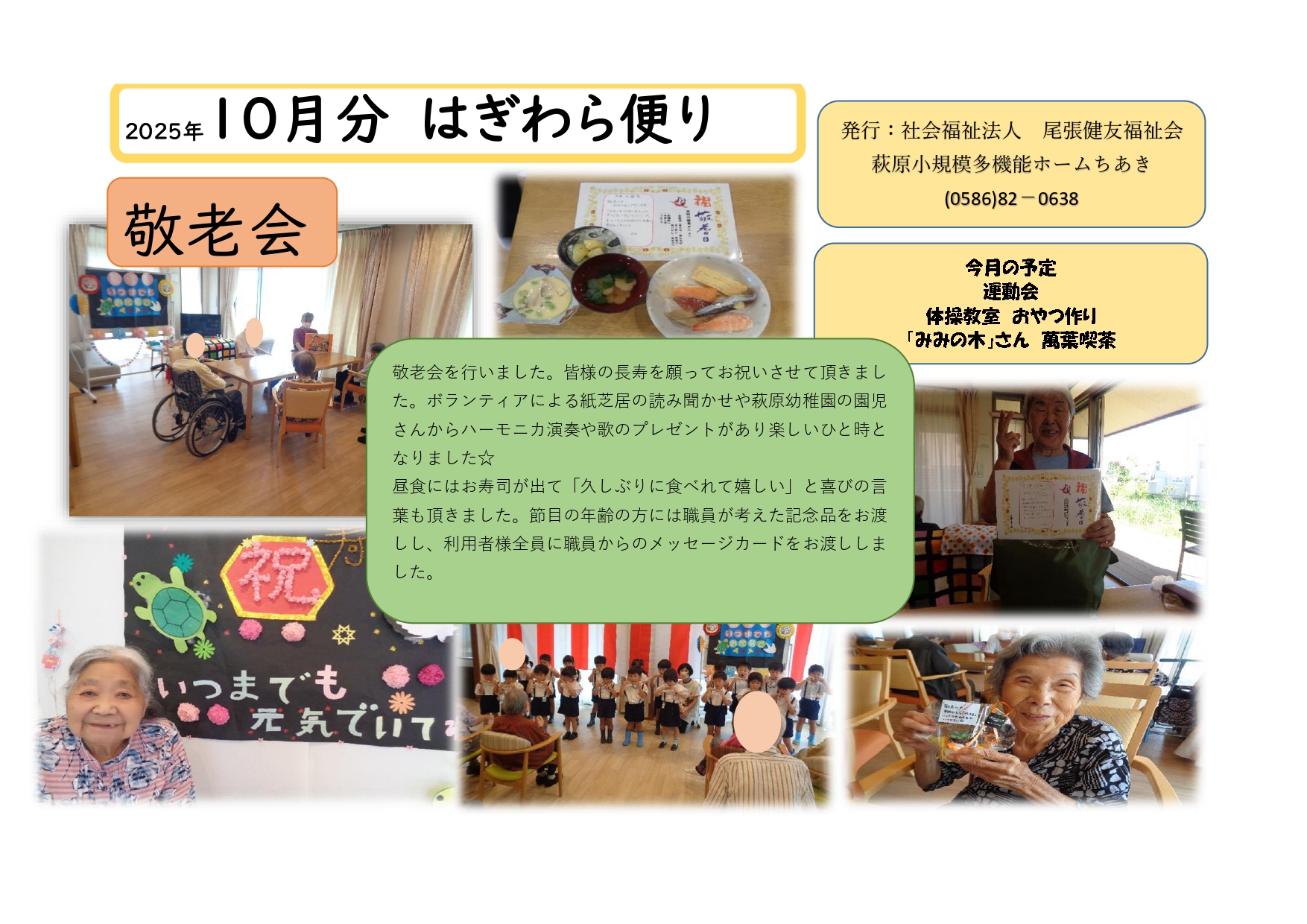 萩原小規模多機能ホーム 「はぎわら便り」10月号