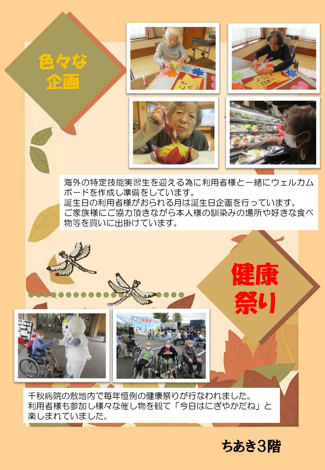 特養・ちあき3階の皆様のご様子です。様々な企画を楽しみました。