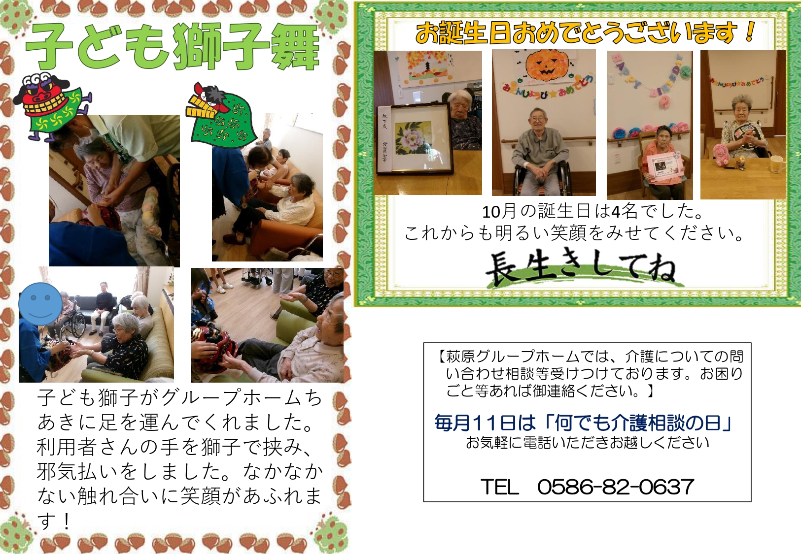 「萩原グループホームちあき 萬葉のたより11月号」