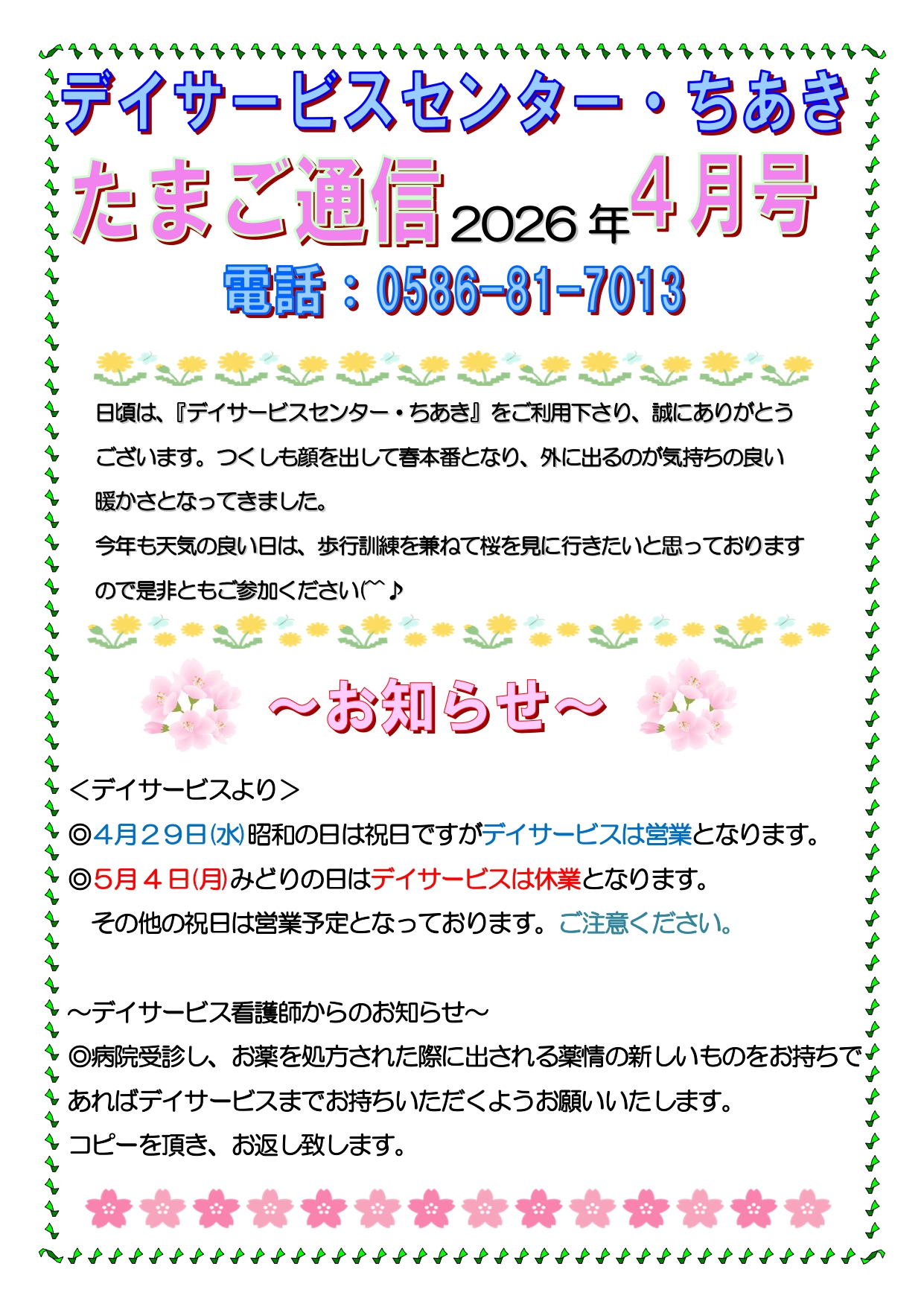 デイちあき4月号 たまご通信