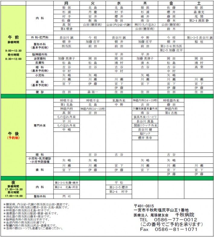 ※循環器の医師は服部・朝倉・鈴木です
