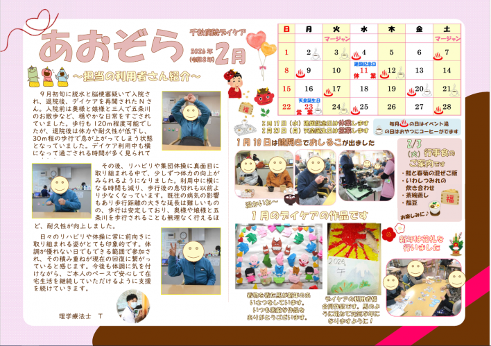 デイケアセンターのお知らせ案内”あおぞら”を掲載しております。